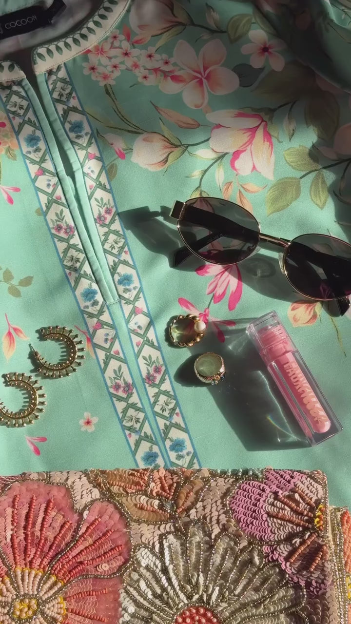Add a refreshing touch to your wardrobe with this aqua blue floral printed long kurti from Aminah Designs. The soft gradient base with delicate floral prints creates a perfect balance of grace and modern elegance.