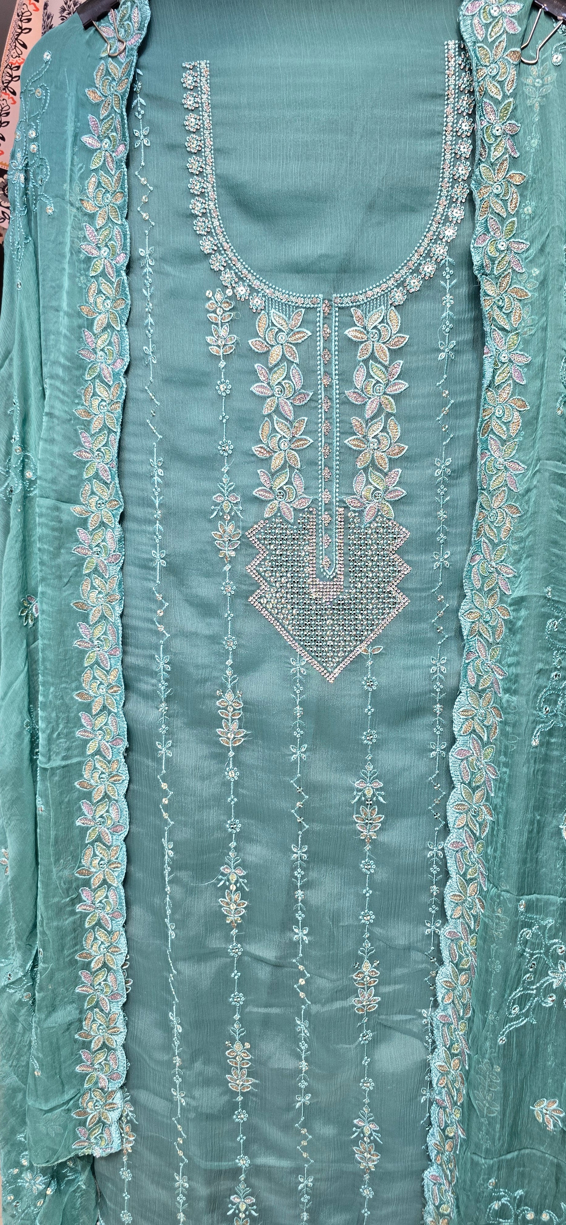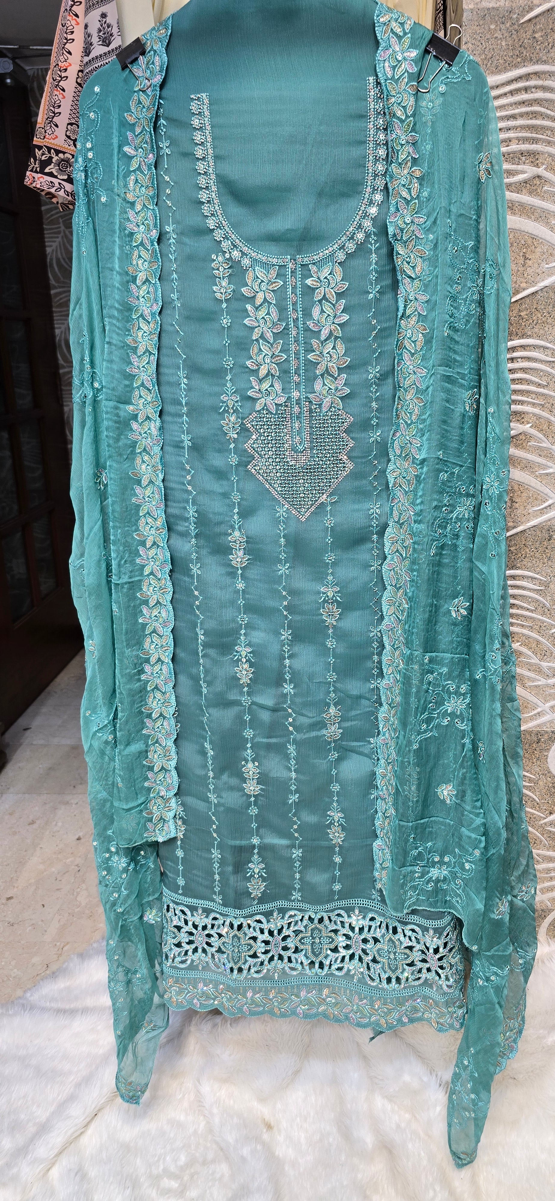 BEAUTIFUL 3 PC SET UNSTITCHED WITH INTRICATE CUTWORK DETAILS