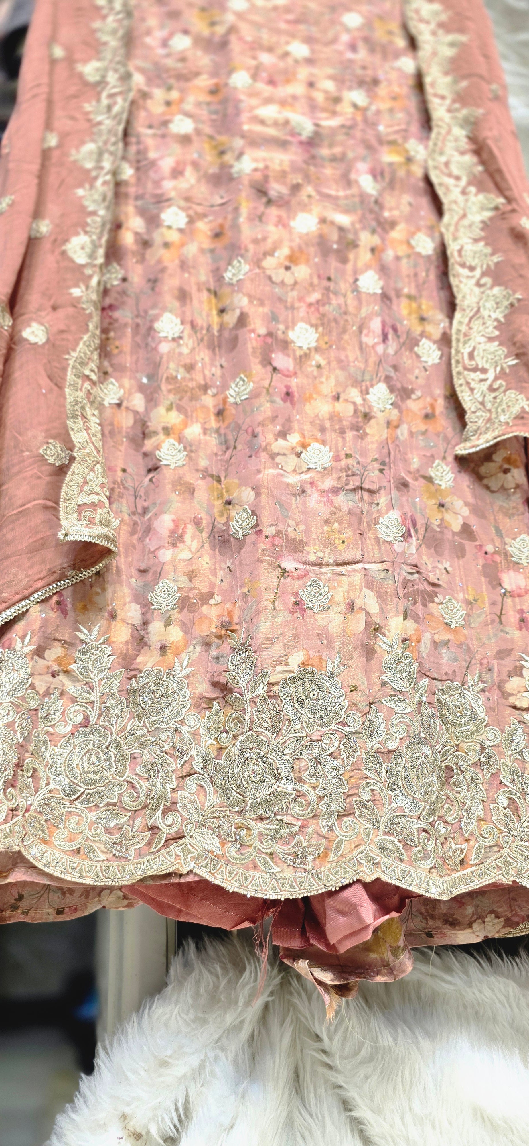 BEAUTIFUL SHADE 3 PC UNSTITCHED DRESS WITH HEAVY EMBROIDERY ON TOP AND DUPATTA
