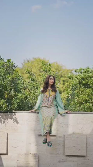 Who says everyday wear can't be magical? This vibrant green & yellow stunner is your instant mood-lifter! With its Turkish-inspired floral charm and airy natural crepe fabric — this set is like a breath of fresh style.