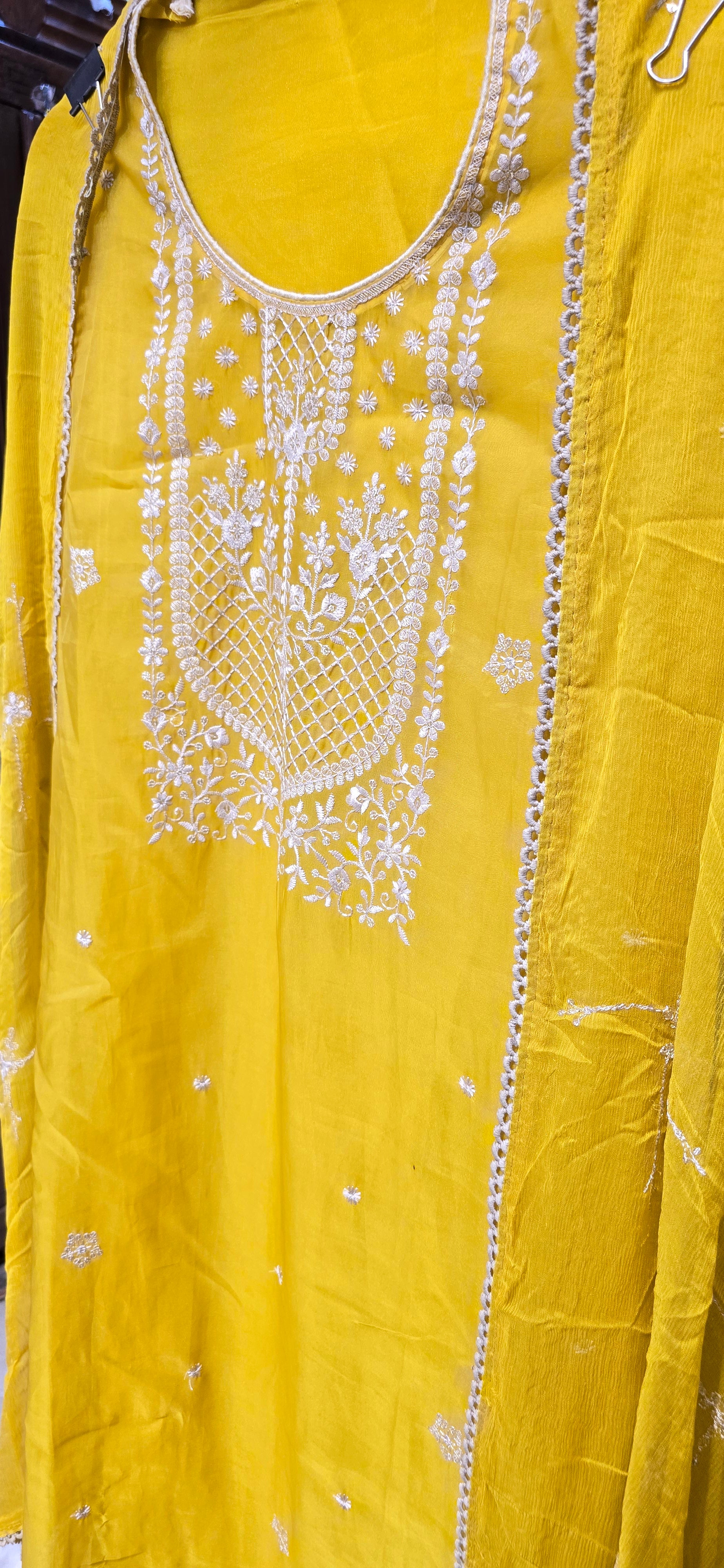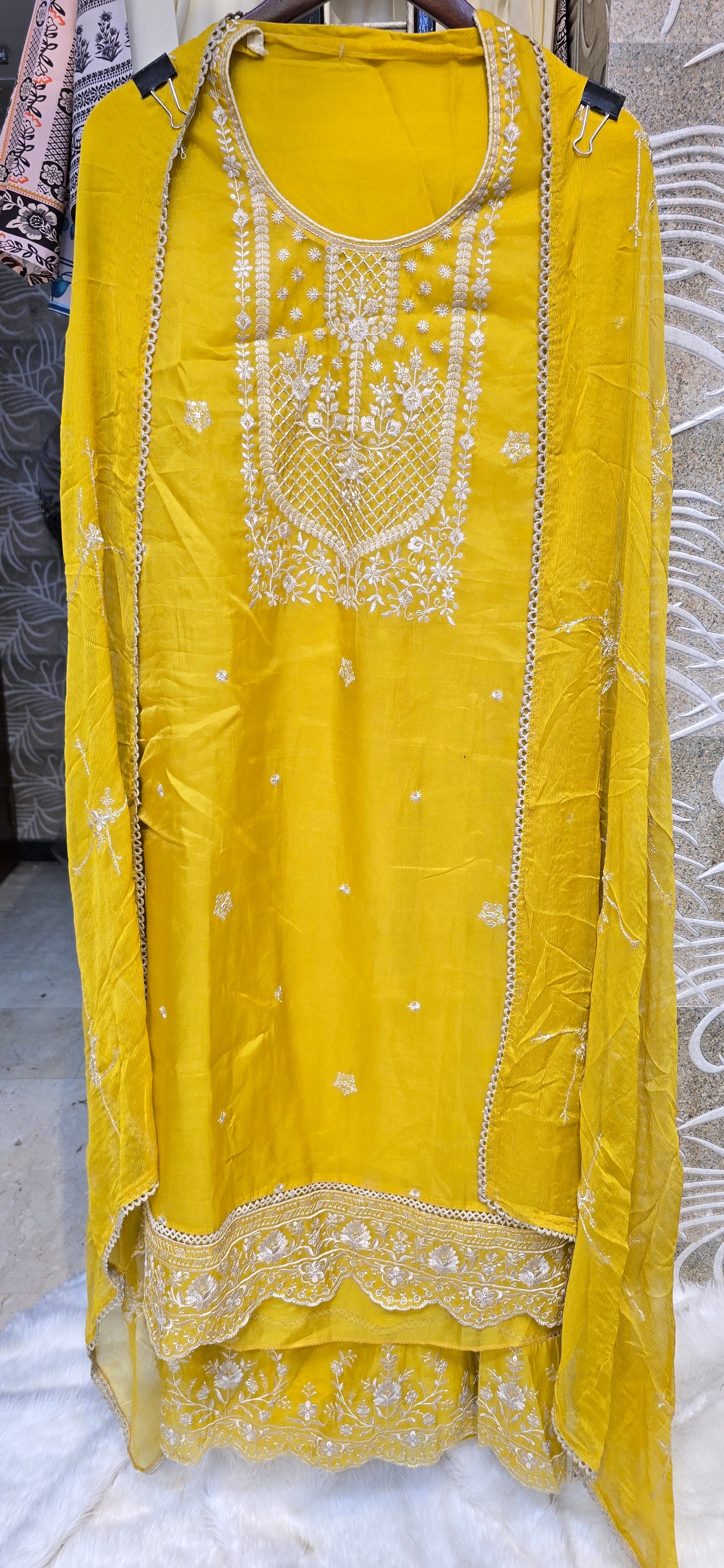 HALDI SPECIAL YELLOW 3 PC UNSTITCHED SET FULLY EMBROIDERED DRESS