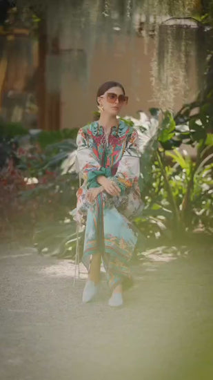 Step into the wild side of elegance with this breathtaking cord set — where nature’s beauty meets Turkish luxury. From the vivid tribal patterns to the cool lagoon-blue tones, this outfit turns heads on land 🌳 and sea 🌊!