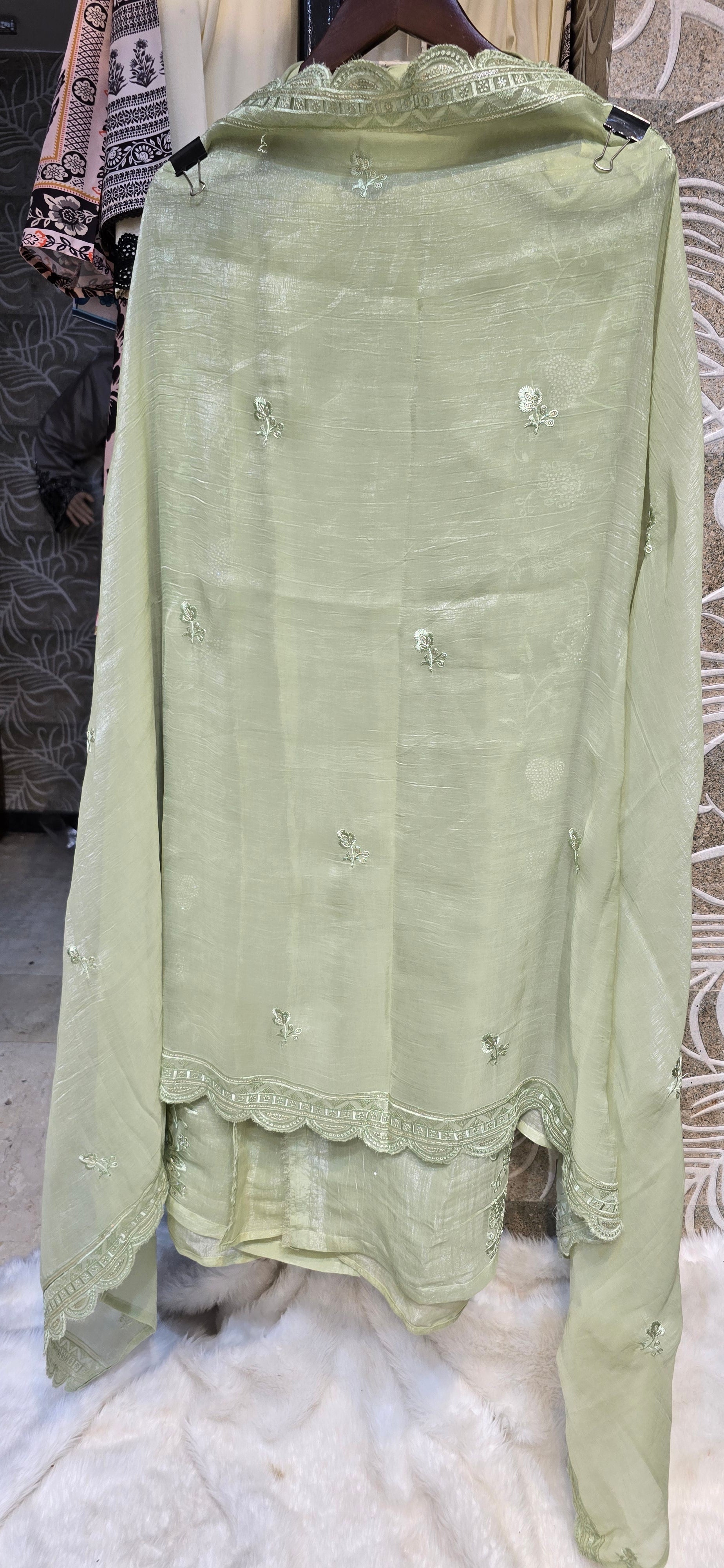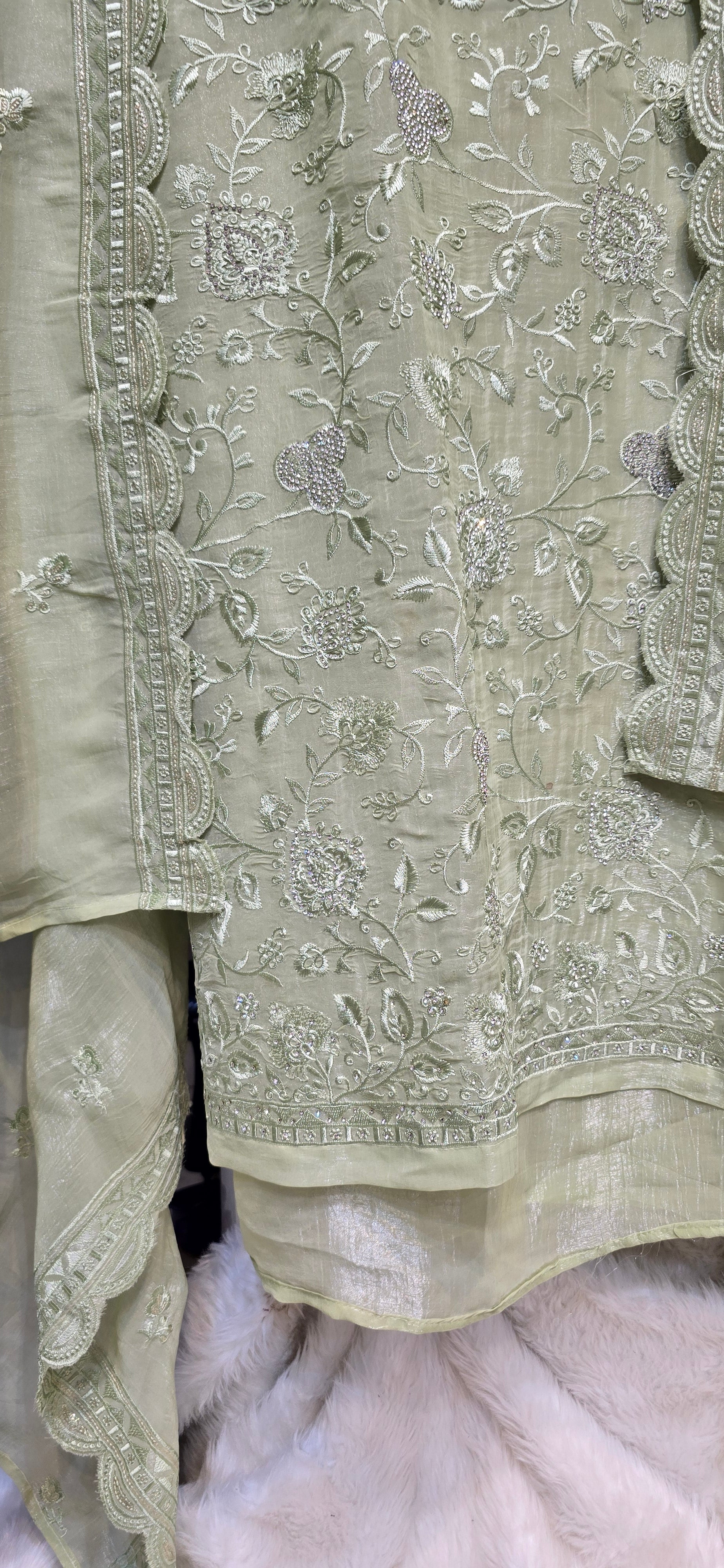 MEHENDI SPECIAL GREEN COLOR EXCLUSIVE 3 PC SET FULLY EMBROIDERED DRESS