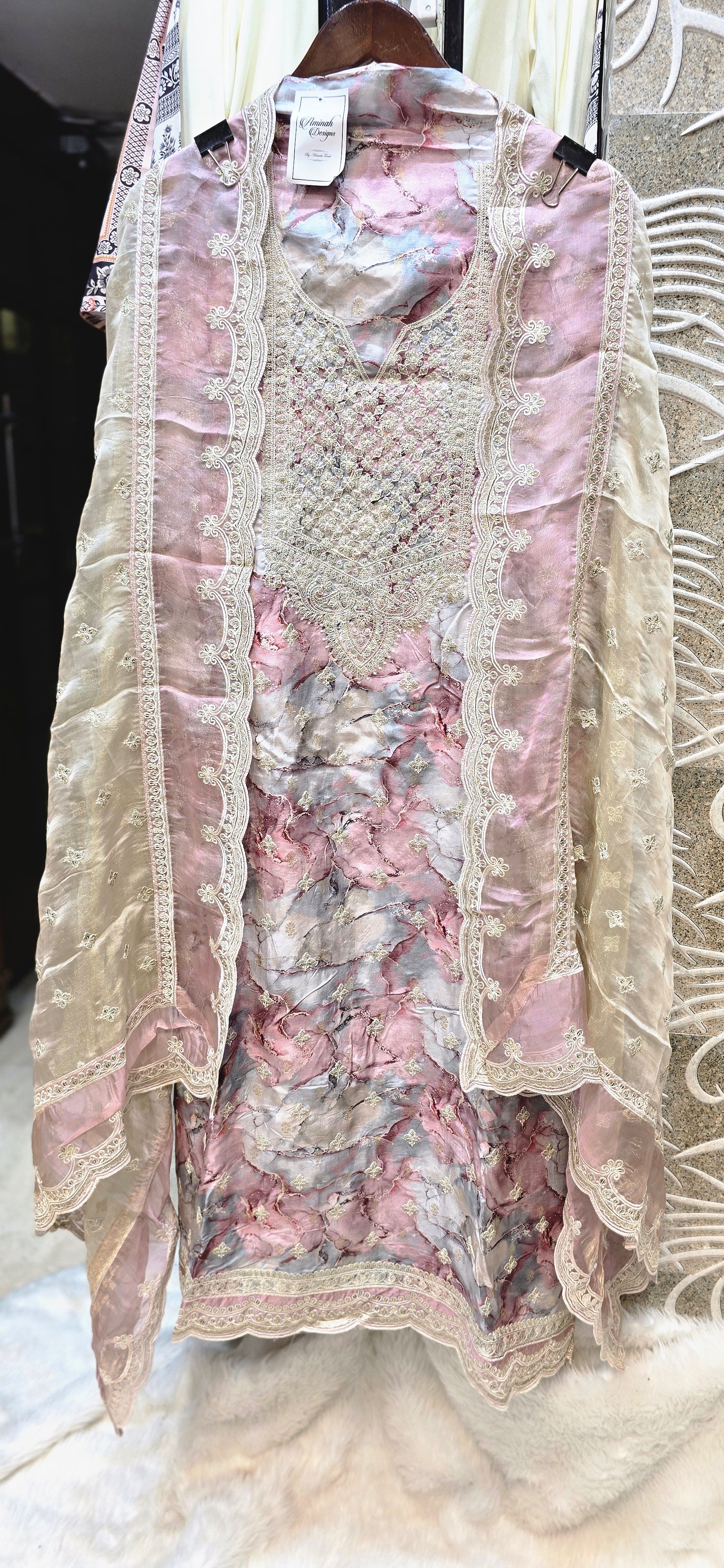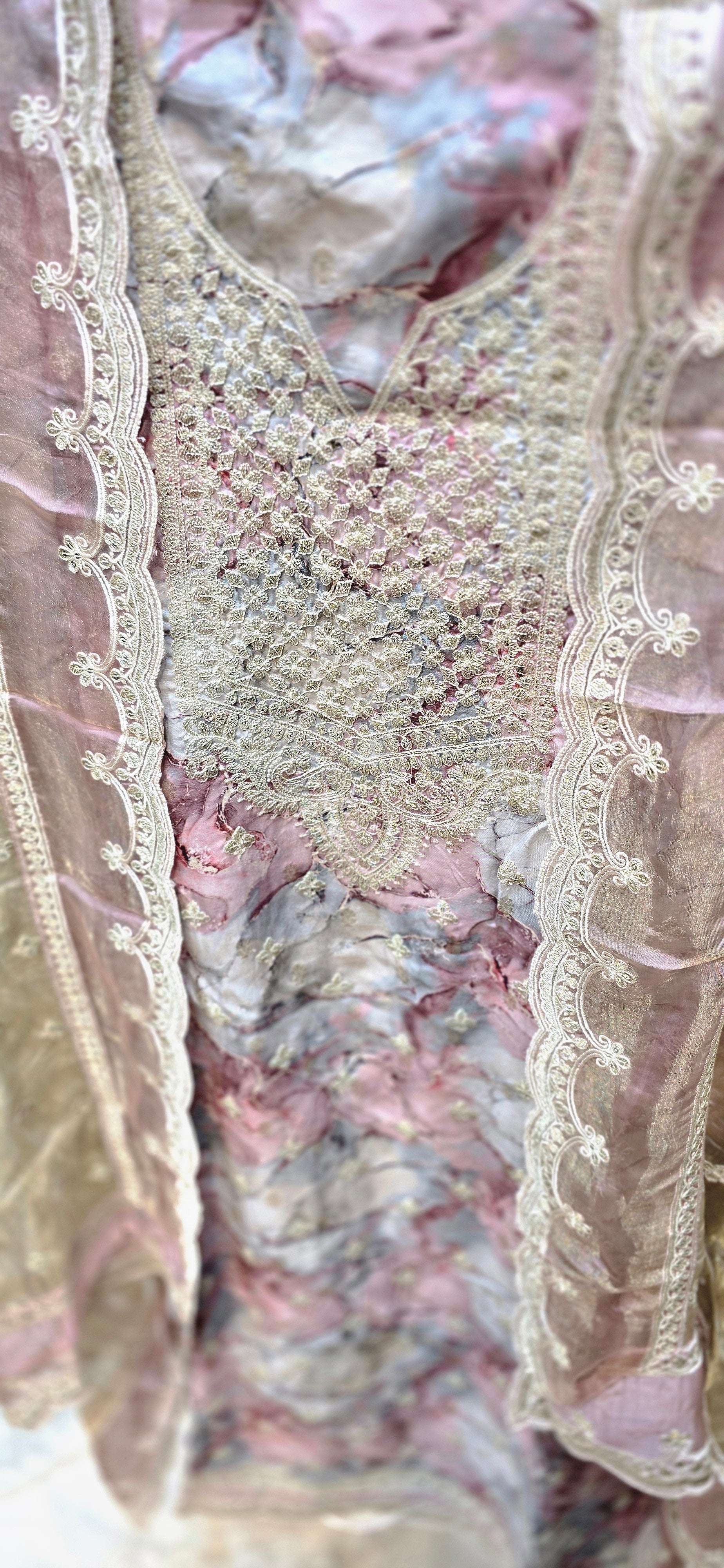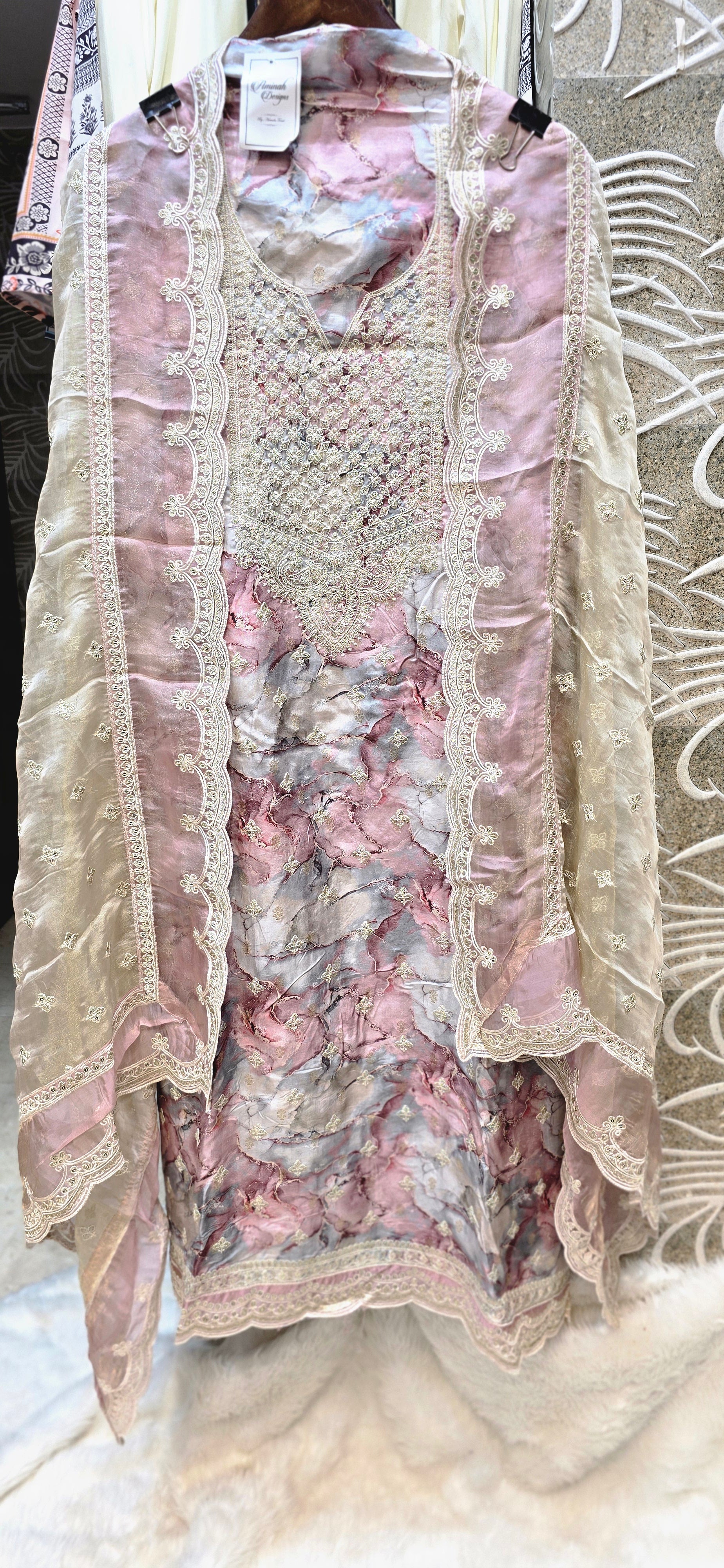 This multicolor 3-piece unstitched dress set is crafted from luxury imported fabric, featuring intricate heavy embroidery that highlights expert craftsmanship. Designed for those who appreciate quality and detail, it offers versatility to tailor the perfect fit while showcasing vibrant colors and rich textures. Ideal for special occasions, this ensemble blends traditional elegance with premium materials for a distinguished wardrobe addition.