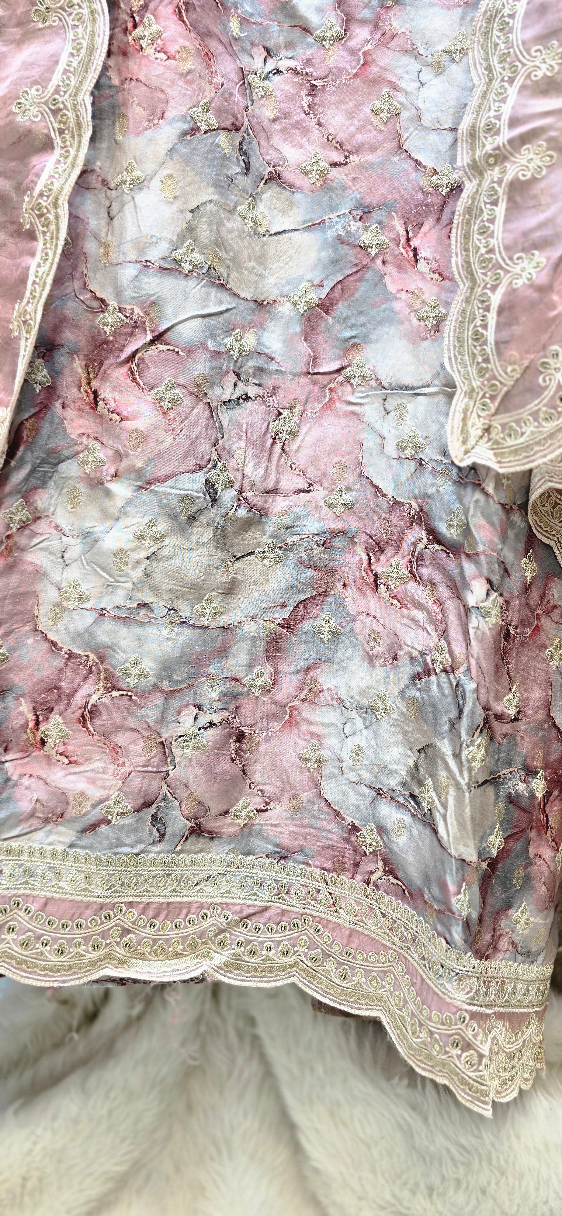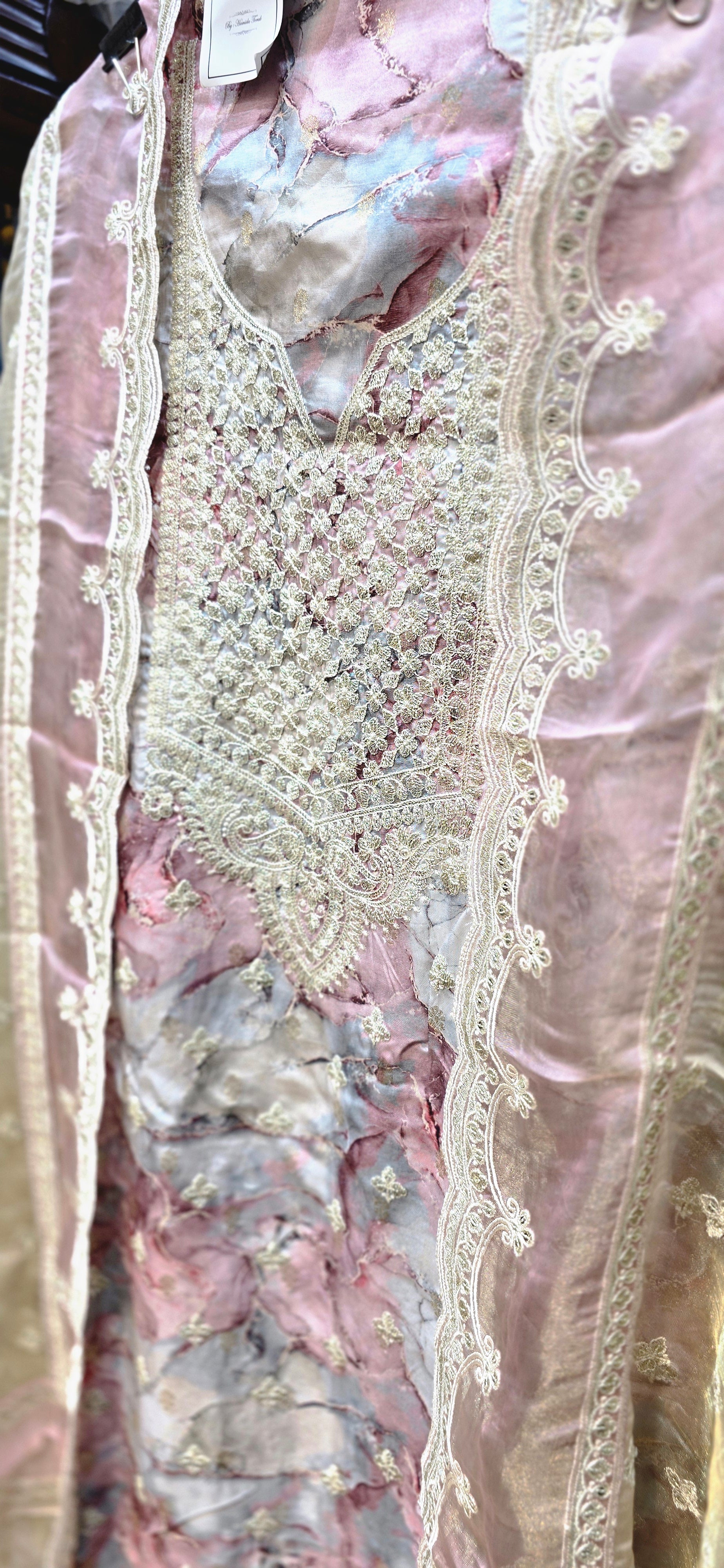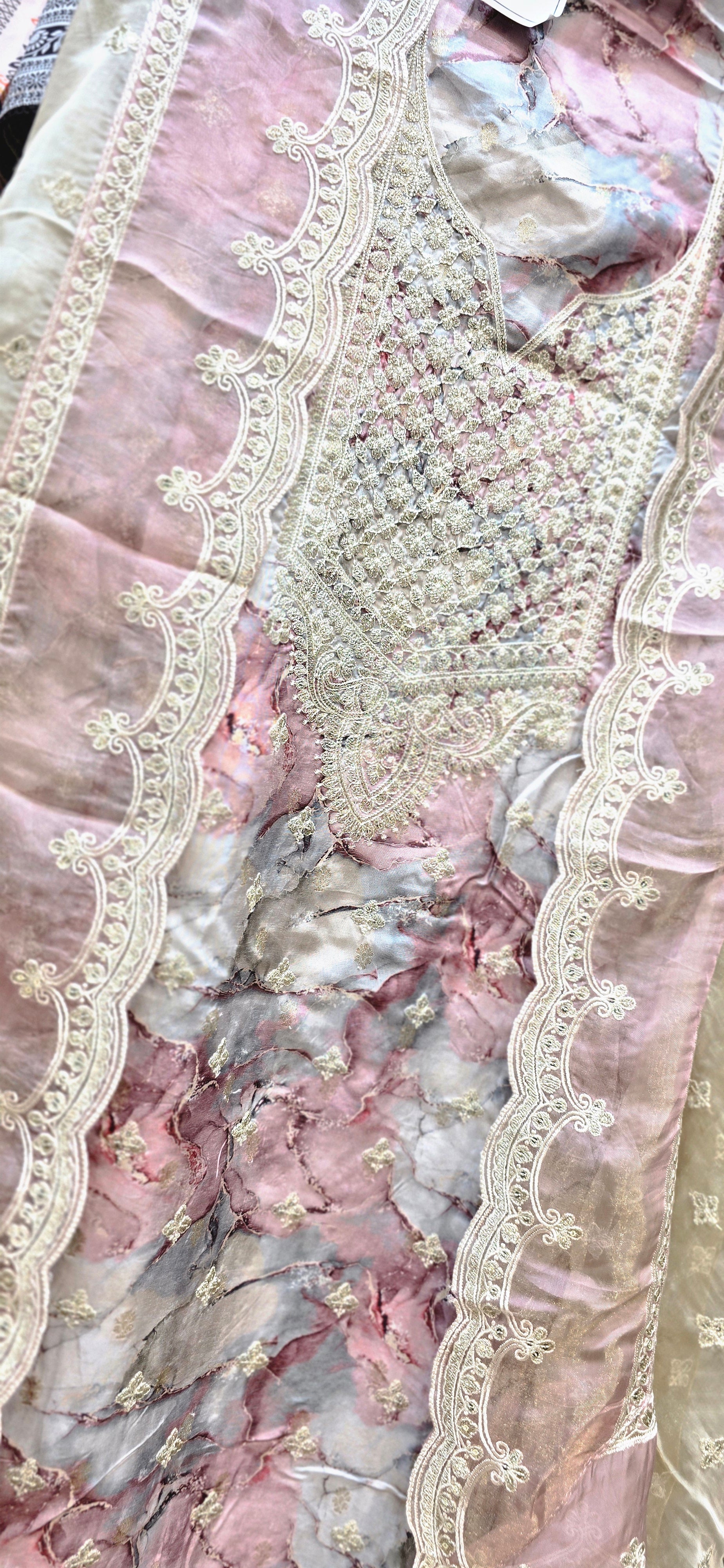 MULTICOLOR 3 PC HEAVY EMBROIDERED UNSTITCHED DRESS IN LUXURY IMPORTED FABRIC