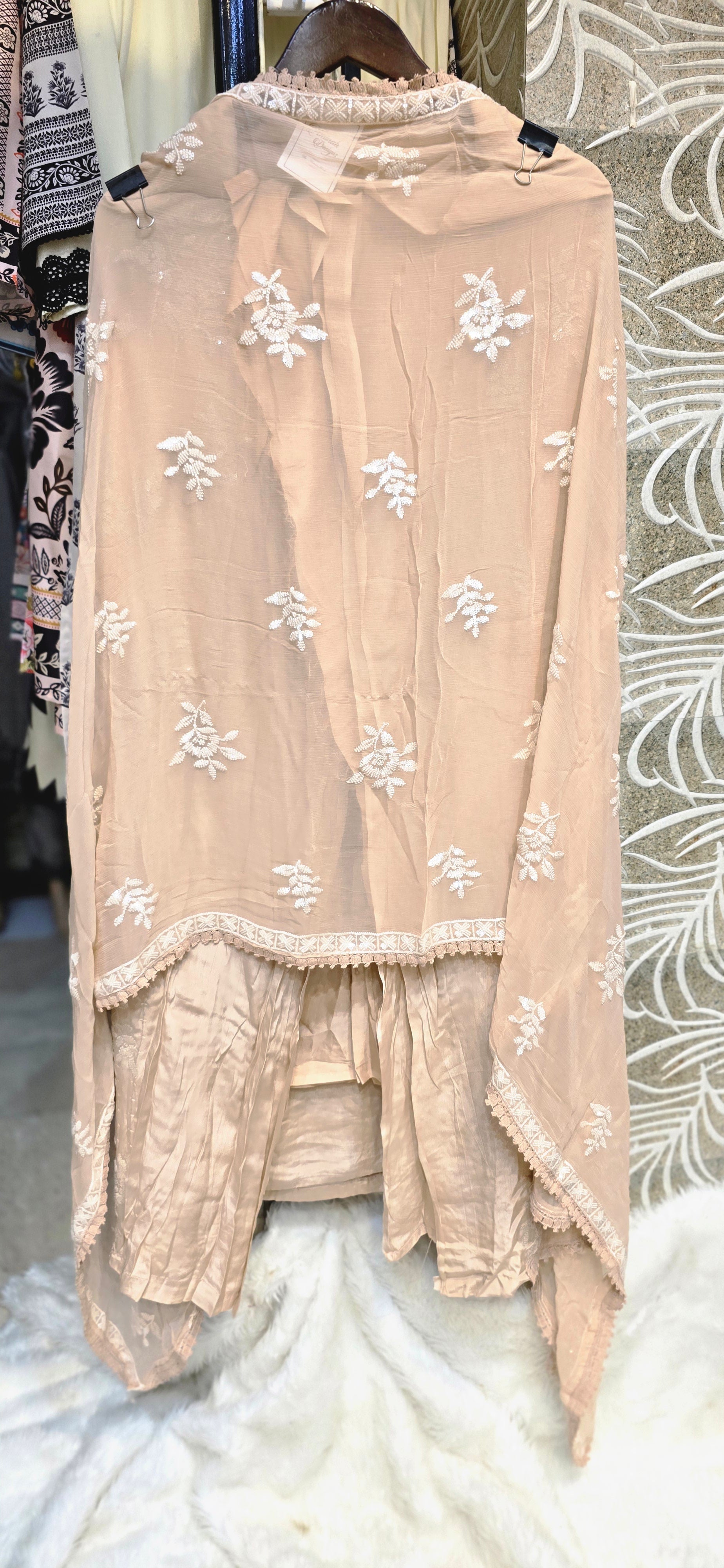 PEACH COLOR 3 PC UNSTITCHED DRESS WITH BEAUTIFUL INTRICATE EMBROIDERY WITH FULLY EMBROIDERED DUPATTA