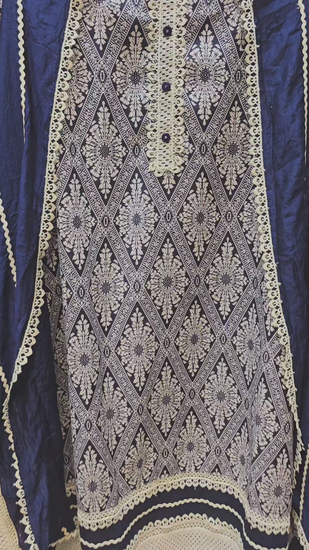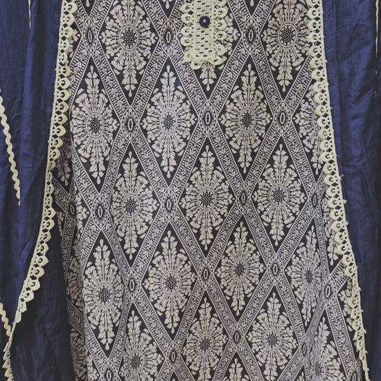 Experience the elegance and comfort of pure cotton with these designer unstitched suits, enhanced by delicate lace work. Crafted from high-quality cotton fabric, they offer breathability and softness ideal for all-day wear. The intricate lace detailing adds a refined touch, making these suits perfect for customization to suit your style for various occasions. Embrace versatility and sophistication in every stitch with these timeless, breathable designs.