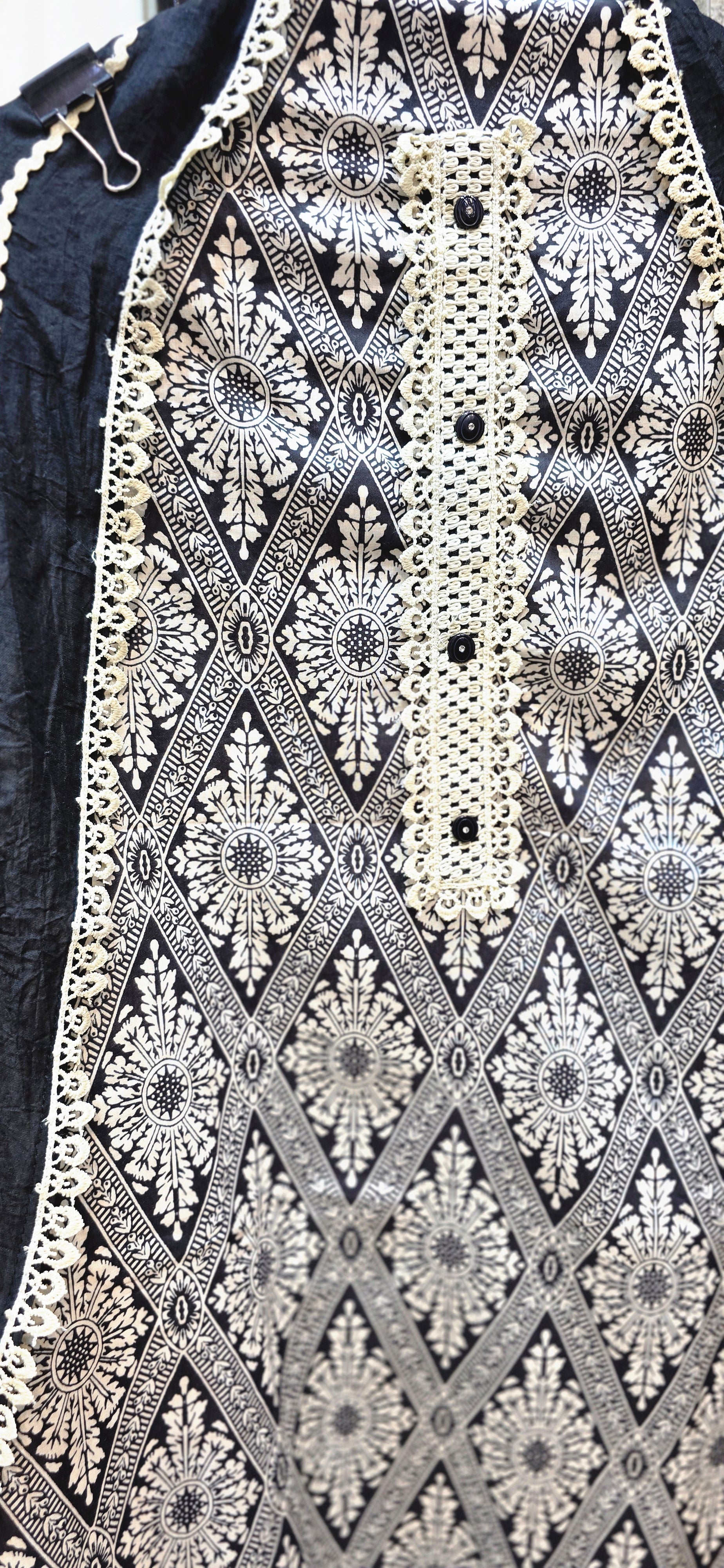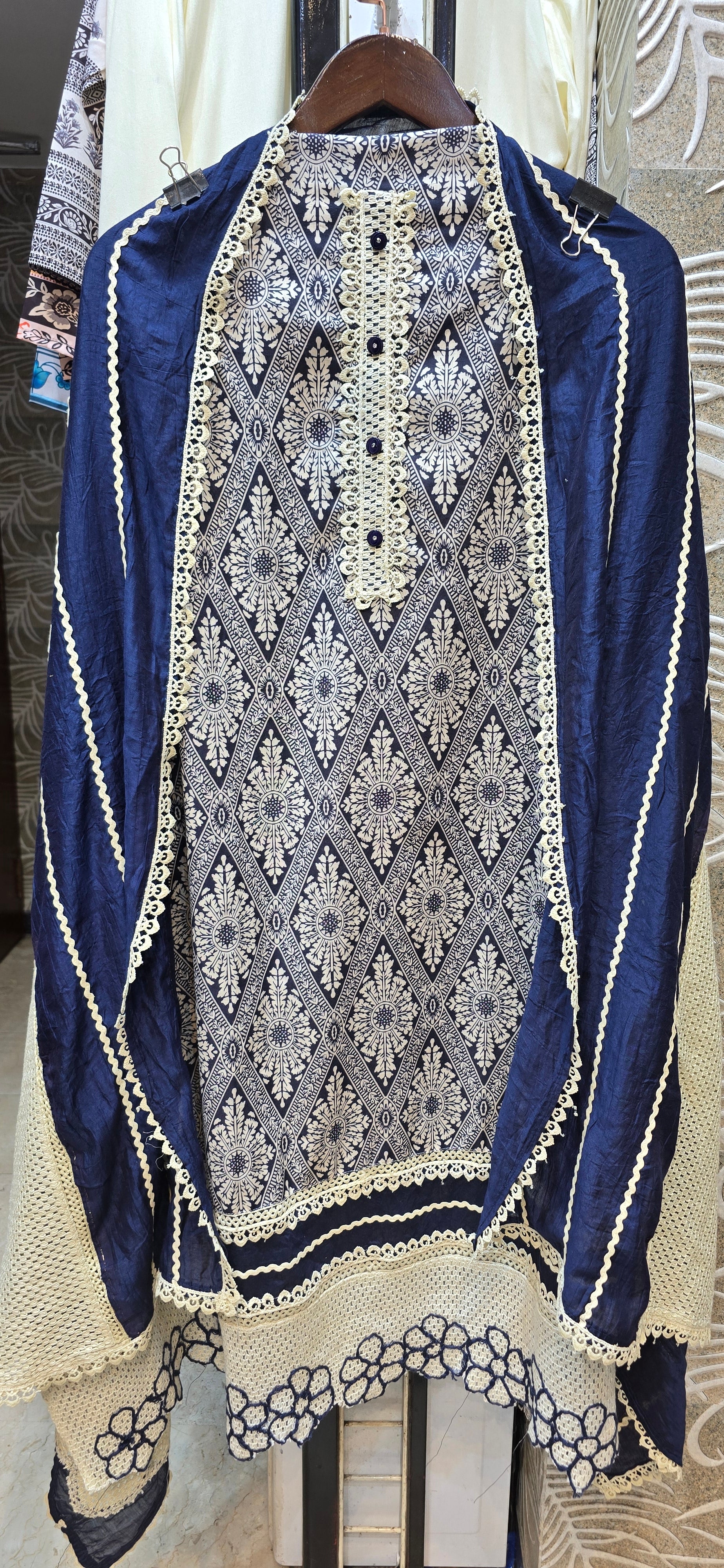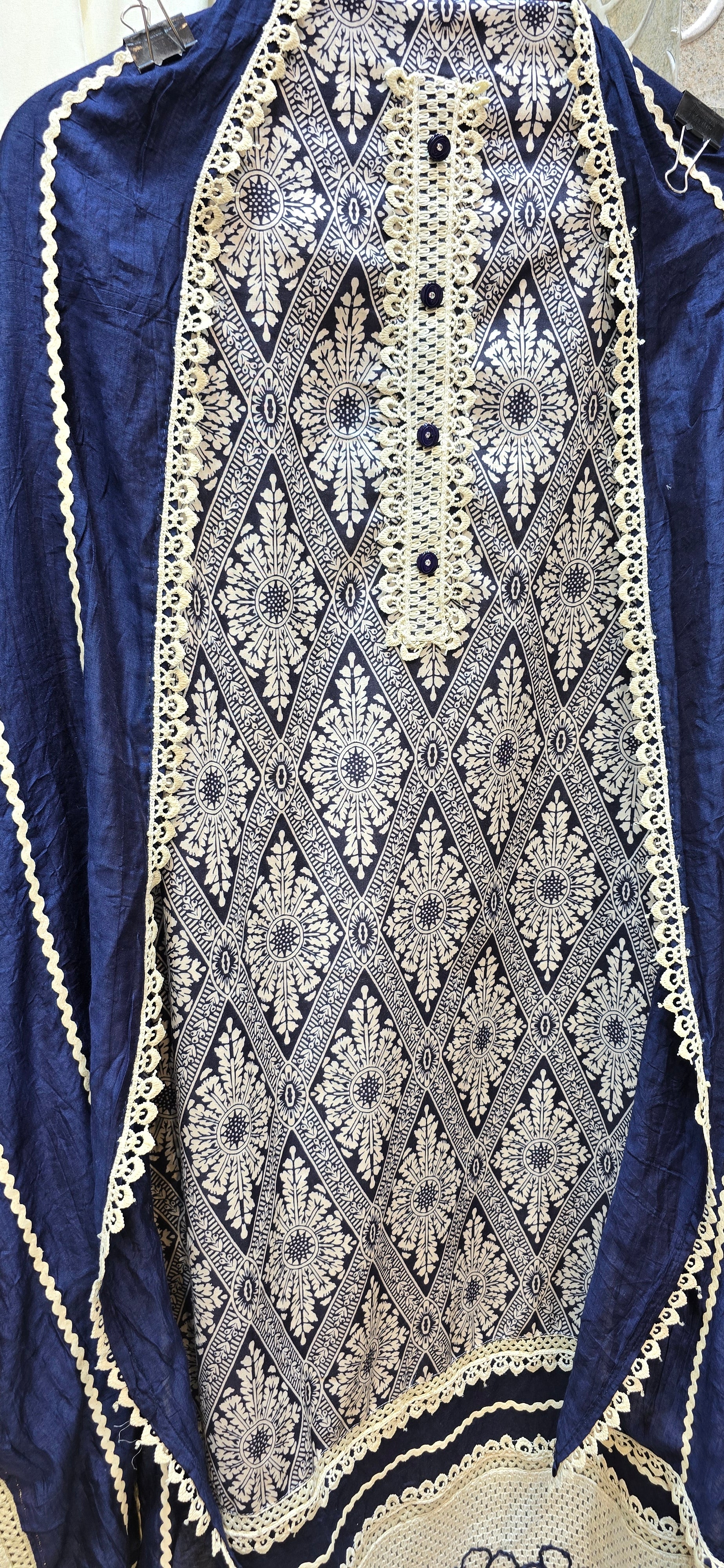PURE COTTON DESIGNER UNSTITCHED SUITS WITH LACE WORK