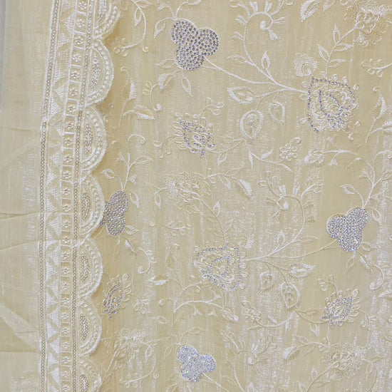 This yellow 3-piece unstitched set features intricate full embroidery that highlights its exquisite craftsmanship. Including a beautifully embroidered dupatta, this ensemble offers versatility for custom tailoring while ensuring a polished, elegant look. Ideal for those seeking traditional style combined with premium detailing.