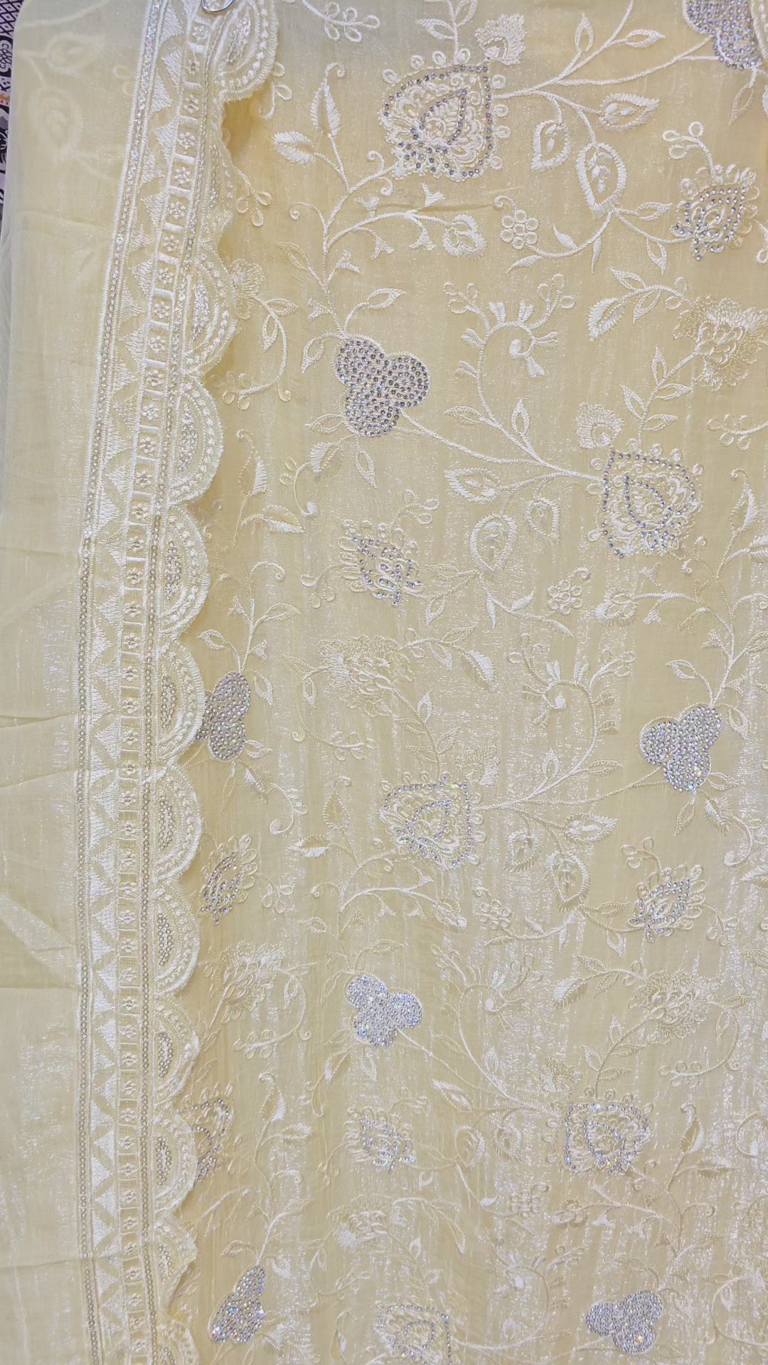 YELLOW COLOR 3 PC UNSTITCHED FULLY EMBROIDERED DRESS WITH BEAUTIFUL EMBROIDERED DUPATTA